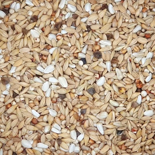 Gerste 25%, Paddy-Reis 20%, Weizen 15%, Kardi 10%, geschälter Hafer 5%, roter Sorghum 5%, Buchweizen 2,5%, Kanariensaat 2,5%