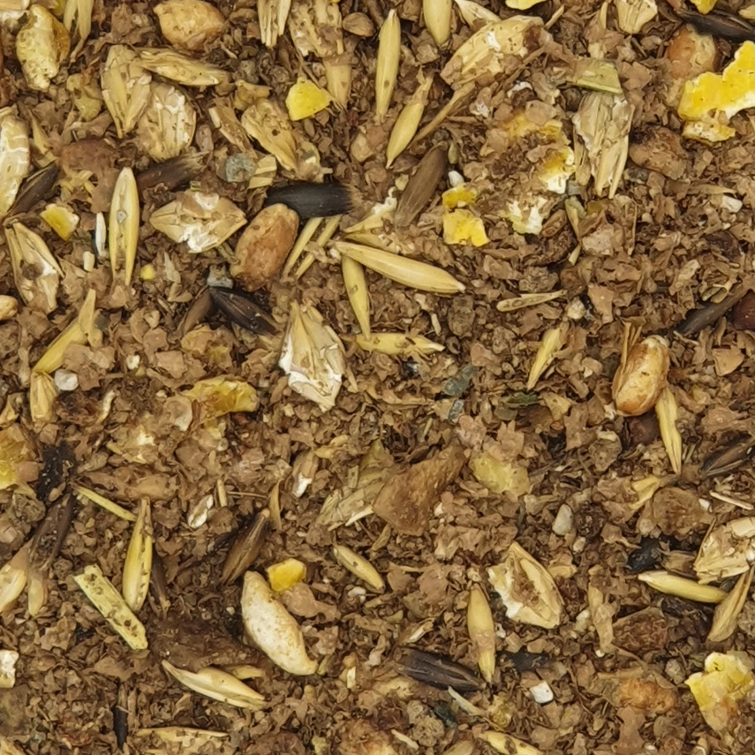 Die traditionelle Rezeptur von Mash ist aufgebaut auf Weizenkleie, Leinsamen, Hafer und Viehsalz. Diese spezielle Mischung wurde durch den Zusatz von Kräutern, extrudierter Leinsaat und EMH gezielt aufgewertet.