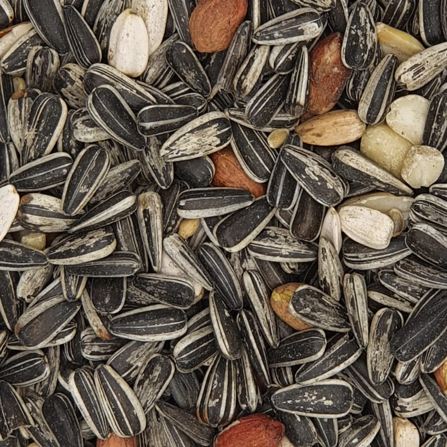 Besteht ausschließlich aus gestreiften sowie weißen Sonnenblumenkernen, die reich an wertvollem Protein und hochverdaulichem Fett sind.