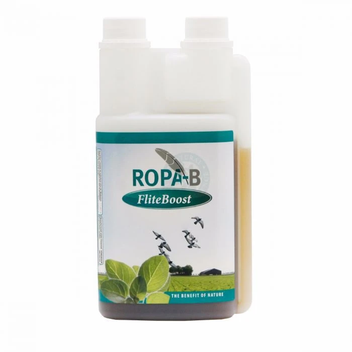 Das Ropa-B FliteBoost ist ein natürliches Kräutertonikum für gesunde Atemwege und zur Unterstützung des Sauerstofftransports im Blut. Auf diese Weise können Ihre Tauben Ihr volles Potential abschöpfen und das ganz ohne Chemie.