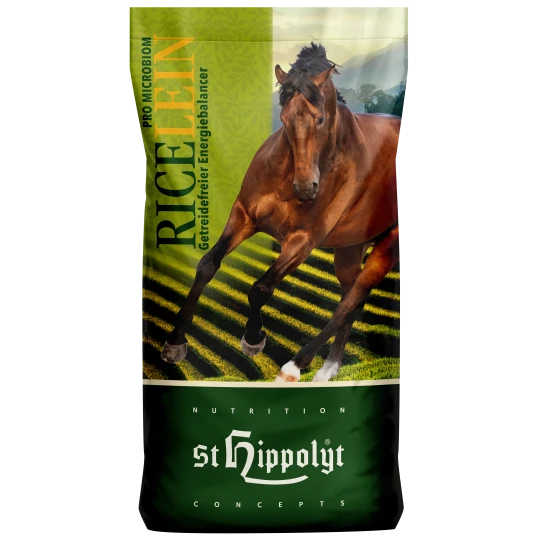 RiceLein ist ein niederglykämischer Energiebalancer zum Aufwerten energiearmer Rationen. Anstelle von Stärkequelle liefern leicht fermentierbare Fasern und Reiskleie schnell verfügbare Energie. Durch die magenschützenden Eigenschaften der Leinsaat eignet es sich besonders für Pferde mit einem empfindlichen Magen-Darm-Trakt. Durch die Reduzierung von Stärke- und Zucker kann es auch an Pferde mit Muskelproblemen wie PSSM, Tying up und Kreuzverschlag oder Pferde mit PPID (Equinem Cushing Syndrom) gefüttert werden. Da RiceLein nicht zusätzlich mineralisiert ist, eignet es sich als Kombination zu jedem Basisfutter.
